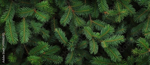 Lush green Christmas tree branches creating a festive and vibrant background for holiday themed designs and seasonal decorations