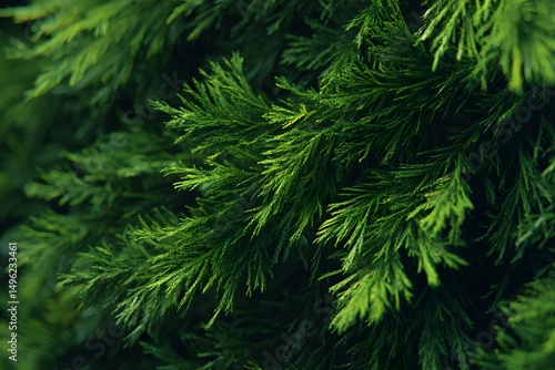 Lush Green Coniferous Tree Branches Detailed Texture Nature Background
