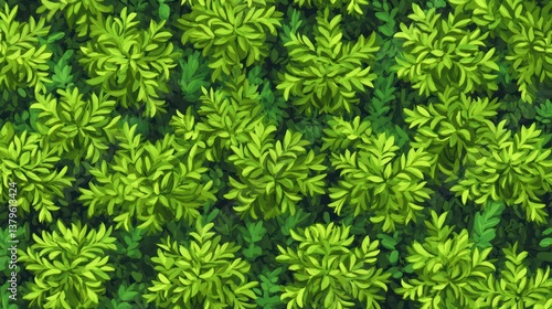 Lush green foliage overhead, vibrant leaves, nature background, digital illustration, website texture