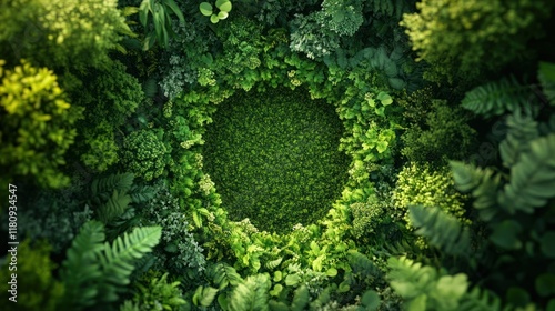Lush green foliage wall backdrop, empty center, studio shot, nature theme