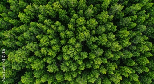Lush green forest canopy aerial view