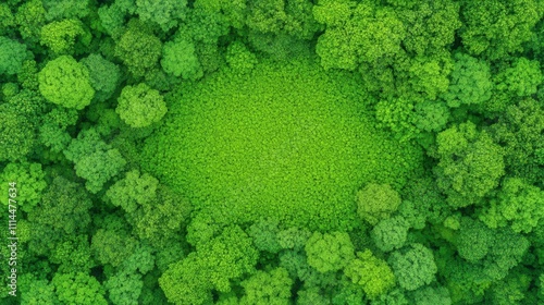 Lush Green Forest Canopy Overhead View with Clear Space in Center