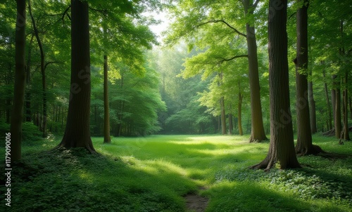 Lush green forest with vibrant sunlight