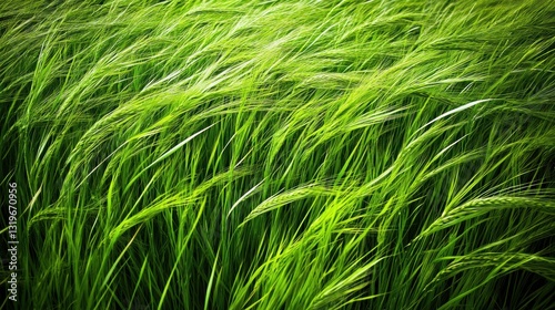 Lush Green Grass Field Gently Swaying in the Breeze Under Bright Natural Light Capturing the Beauty of Nature's Serenity and Vibrancy