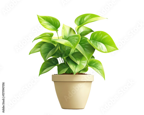 Lush green houseplant in a simple beige pot with vibrant leaves.
