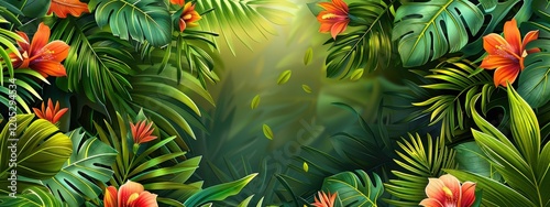 Lush green jungle with a lot of flowers and leaves