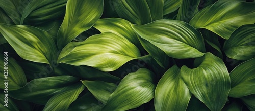 Lush green leaves close-up forming natural background pattern with rich foliage texture