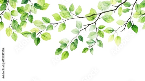 Lush green leaves gently cascading from branches, creating a serene and natural backdrop for design projects