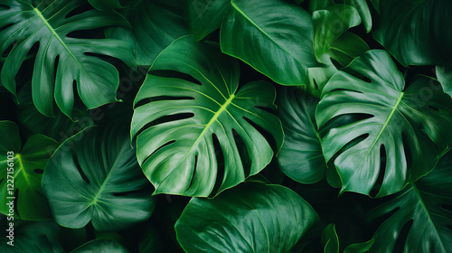 Lush green monstera leaf pattern creating a vibrant and tropical atmosphere in a natural setting. Generative AI