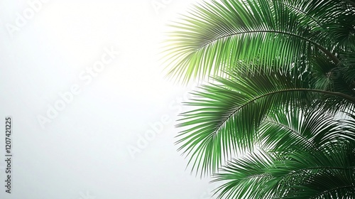 Lush green palm leaves against a bright white background creating a tropical and serene atmosphere