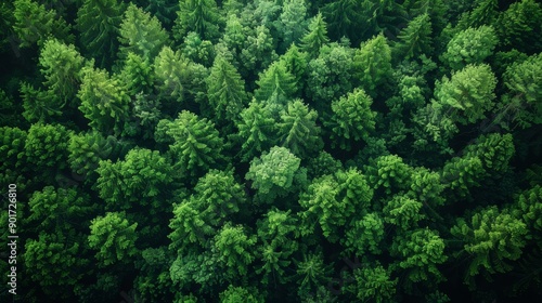 Lush Green Pine Forest Captured From Above During Clear Summer Day. Generative AI