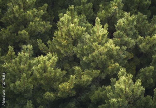 Lush Green Pine Tree Canopy Close-Up Depicting Dense Foliage and Natural Texture of Coniferous Forest in Bright Natural Light During Daytime