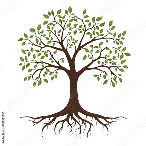 Lush Green Tree with Deep Roots Illustration Nature Graphic Design Element