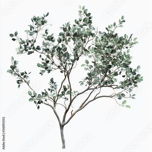 Lush Green Tree with Delicate Leaves against Bright White Background in a Minimalist Artistic Style