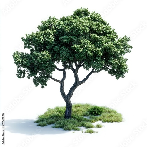 Lush Green Tree with Twisted Branches Isolated on White Background