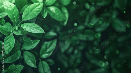 Lush greenery with a special effect, featuring animated leaves and a magical glow, creating a lively and enchanting atmosphere, banner, with copy space