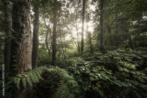 Lush Mediterranean vegetation in a forest on Monte Serra in Tuscany