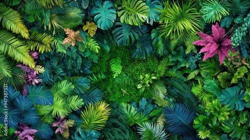 Lush Tropical Foliage Wall Green and Vibrant Leaf Background