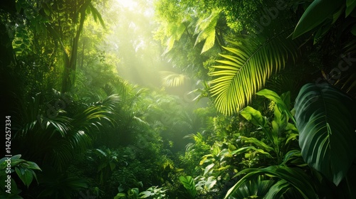 Lush Tropical Rainforest Canopy with Sunlight Filtering Through Dense Foliage