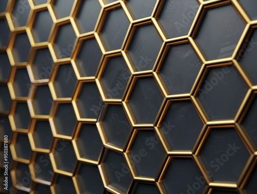 Luxurious 3D Honeycomb Design with Gleaming Gold Hexagons on Dark Background