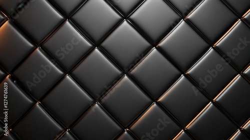 Luxurious black leather quilted pattern with subtle lighting highlights