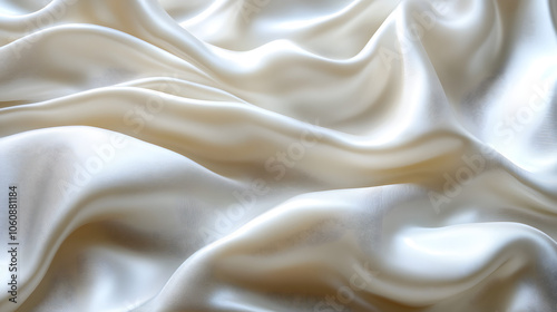 Luxurious Draped White Silk Fabric with Smooth Waves and Soft Highlights Creating a Fluid and Elegant Texture in a Minimalist Abstract Composition