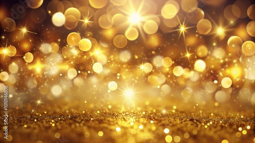 Luxurious golden abstract background with blurred, shimmering lights and subtle bokeh, perfect for adding festive text or graphics, evoking a sense of celebration and glamour.