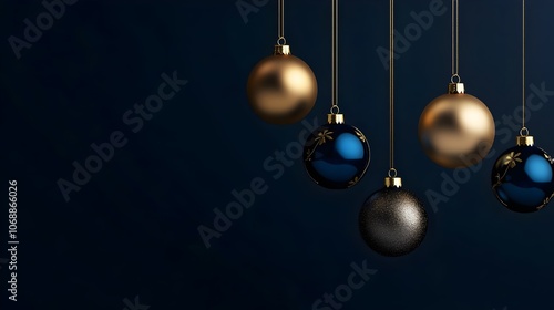 Luxurious Golden and Blue Christmas Balls Hanging on a Dark Background