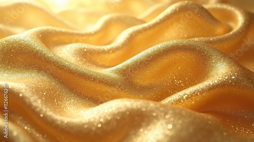 Luxurious Golden Fabric With Smooth Ripples and Metallic Texture