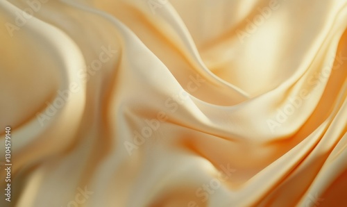 Luxurious golden silk fabric with smooth flowing folds, softly illuminated by warm light for a tactile and elegant texture,
