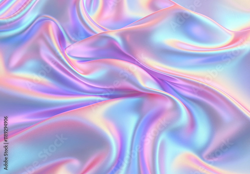 Luxurious iridescent silk fabric in pastel shades, displaying soft flowing texture, colorful gradient design for fashion, elegance, and textile inspiration