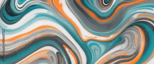 Luxurious marbling Gray, paint swirls in beautiful teal and orange colors abstract background with waves