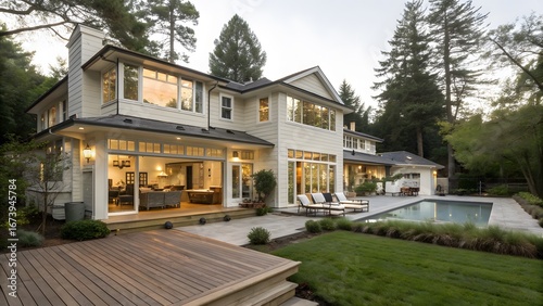 Luxurious modern home with swimming pool and expansive backyard patio