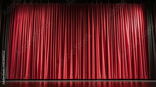 Luxurious red curtain draped elegantly in a theater setting enhanced by spotlight creating a rich and dramatic scene