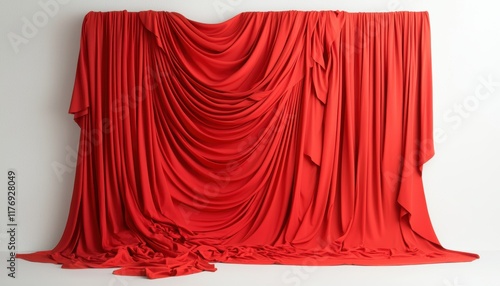 Luxurious red curtains cascading down both sides creating a bold and striking visual focus perfect for announcements or show promotions