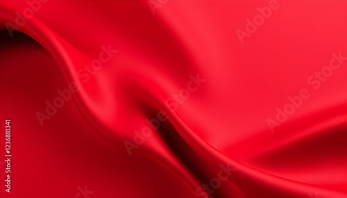 Luxurious red silk fabric, flowing folds, smooth texture, vibrant crimson color, soft drapery, elegant background, silky sheen, rich satiny surface, close-up view, abstract composition, high-quality t