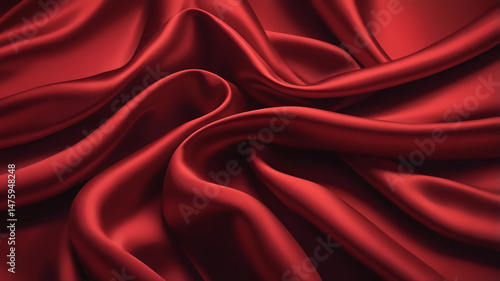 Luxurious red silk with glossy folds and radiant highlights. Bold, elegant fabric texture with deep shadows and smooth sheen, full-frame background.