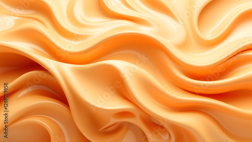 Luxurious smooth glossy orange creamy abstract flowing wavy background texture 3d render for modern elegant design backdrop wallpaper