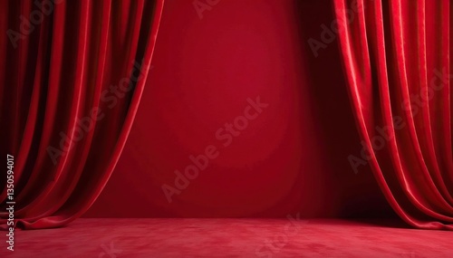 Luxurious velvet curtains, rich deep red backdrop, curtains, elegant, fabric