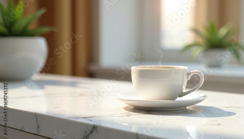 Luxurious white granite surface, tea, empty space for products, modern, top view