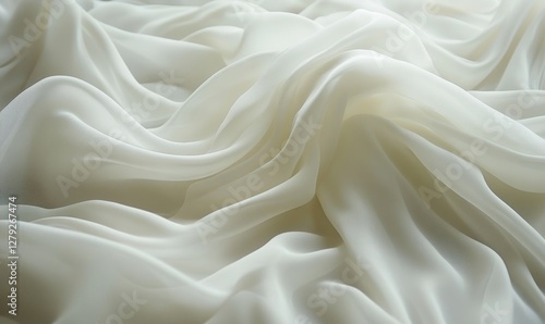 Luxurious White Silk Fabric with Soft Flowing Waves - Elegant Drapery Texture for Design and Background Concepts
