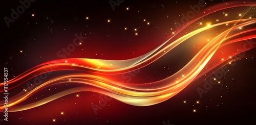Luxurious yellow silk and ribbon adorned with golden sparkles on a rich red background, creating an opulent and elegant atmosphere with ample white space.