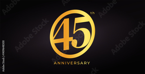 Luxury 45th Anniversary Logo Design With Golden Number In Elegant Modern Style On Dark Background For Celebration, Greeting Card, Event Or Invitation Decoration. Vector Illustration.