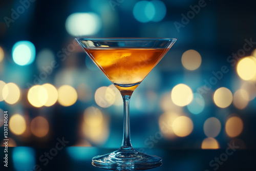 Luxury Cocktail Next To A Highrise Bar Window, Cityscape Bokeh