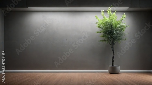 luxury concrete wall,blank border frame, minimal tree, neon light