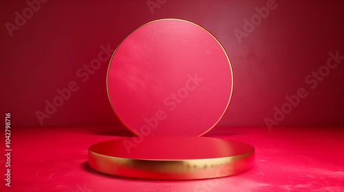 Luxury Elegant Chinese Style Podium with Red and Gold Background for Product Display