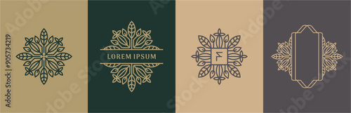 Luxury flowers and leaves logo design. Frames with copy space for text or letter. Abstract vector based creative line style template.