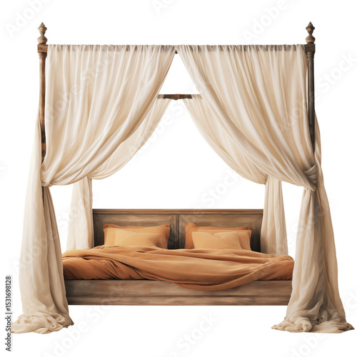 Luxury Four-Poster Bed with Sheer Curtains: Elegant Bedroom Design on transparent background png