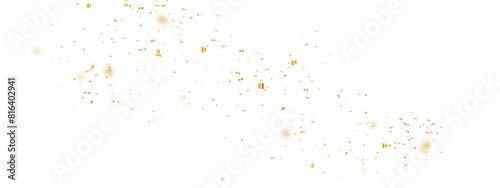 Luxury gold sparkle confetti glitter and zigzag ribbon falling down on transparent background. Vector illustration.