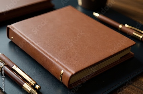 Luxury Leather-Bound Planner in Mocha-Mousse with Gold Embossed Details